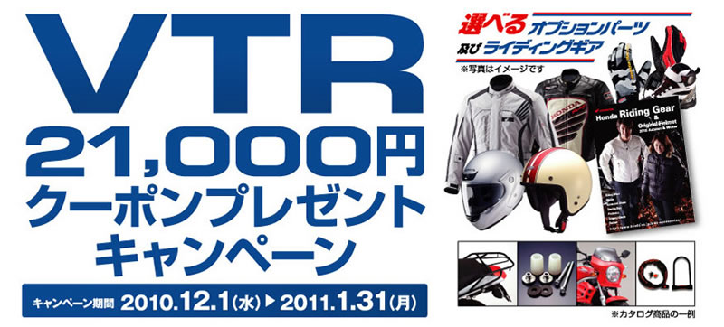 期間/2010.12/1(水)~2011.1/31(月) 対象機種/VTR(2009年モデル以降の新車) 詳しくはコチラから>>