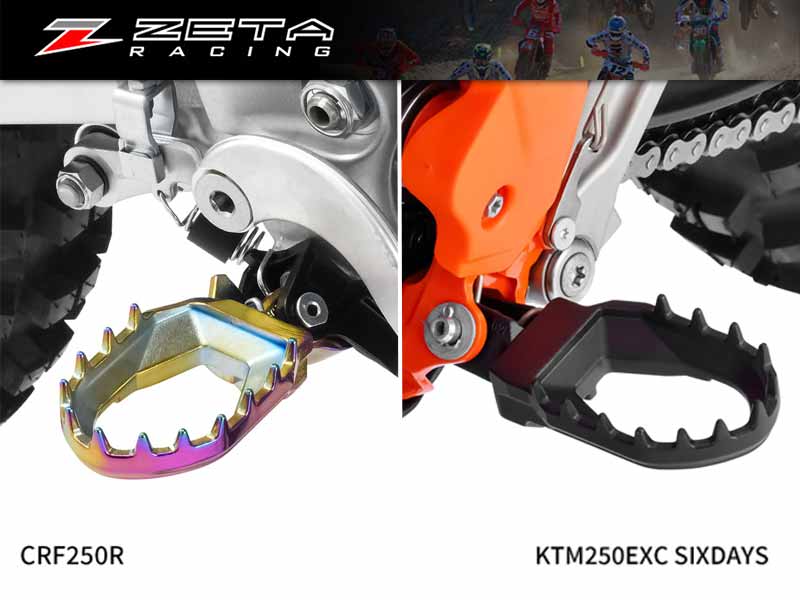 ダートフリークの「ZETA RACING マックスフットペグ」に、ホンダ用および KTM用が追加された。同製品は中央部をくり抜いて排泥性を高めたほか、クロムモリブデン鋼を使用し高強度を実現したワイドフットペグ。カラーは「ブラック(1万1,000円)」「オイルスリック(1万3,200円)」の2色が用意される(価格は全て税10%込み)。