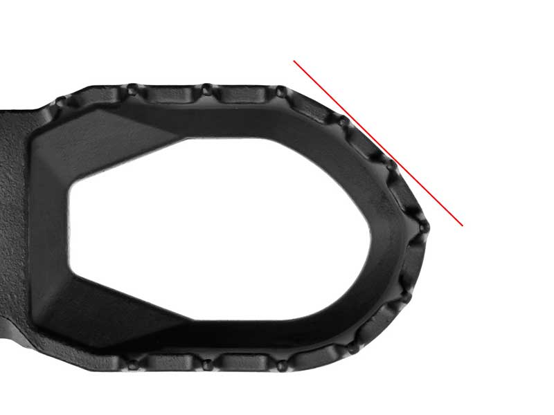 ペグの前後幅を60mmとし、スタンディング時の安定性を向上させ、より自由なフットコントロールを可能にする。純正に対し広がった幅は主に後方に伸びており、シフト操作を阻害しない。